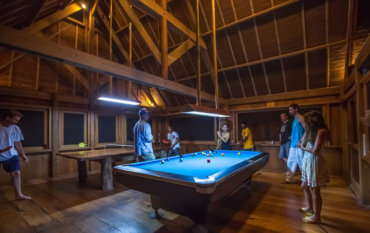 Get ready for endless hours of fun at Kandui Villas®'s game room! Our game room, located right off the swimming pool deck and next to the bar, is the perfect place to hang out and have some fun with friends and family. It's fully equipped with both a billiard table and a ping pong table, providing endless entertainment options for guests of all ages.